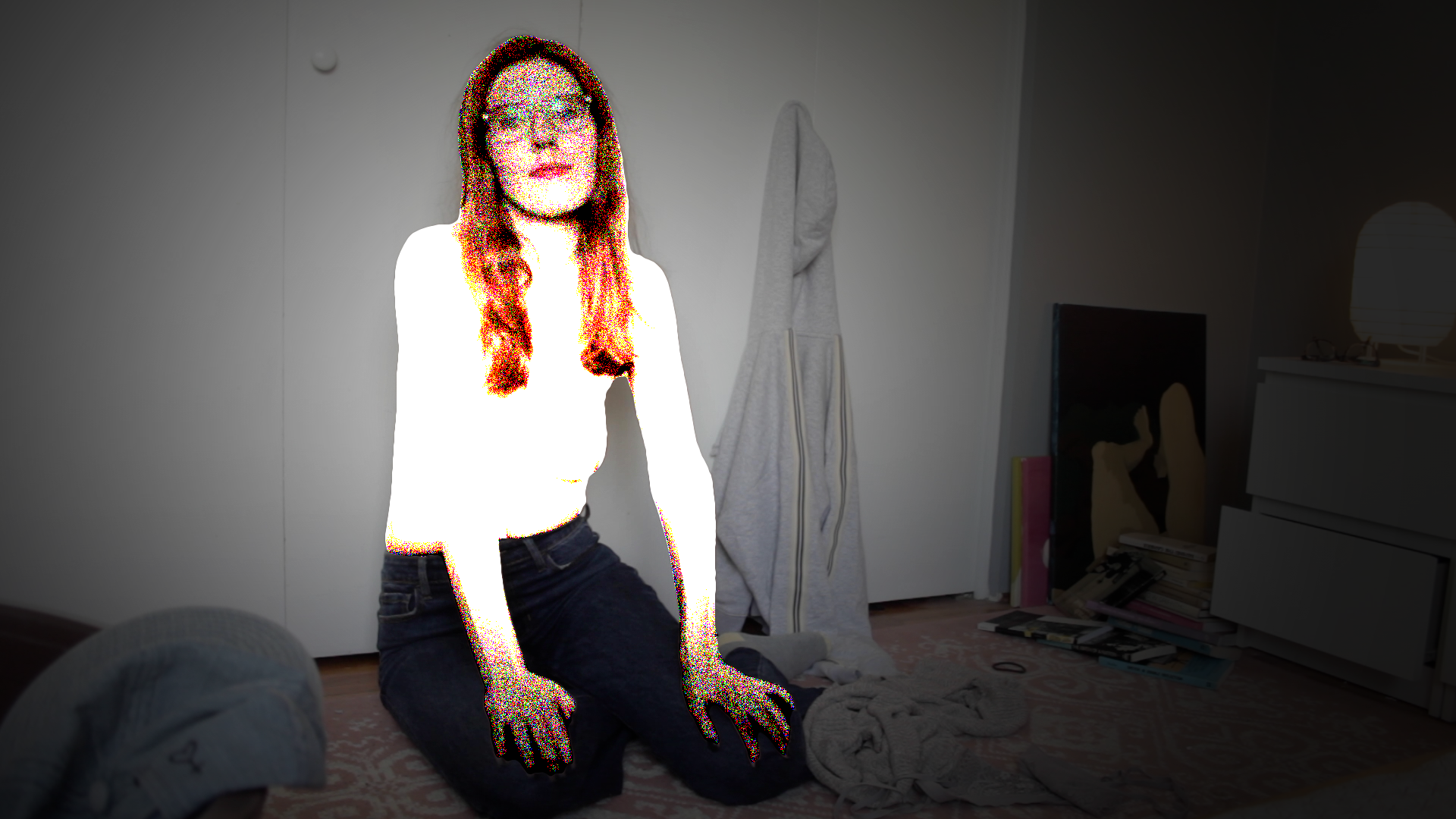 Looping video and audio, CRT TVs, red chair